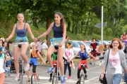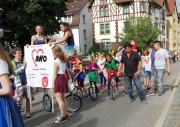 Mit einer großen Gruppe von gut 20 Leuten haben sich die Theatergruppe AWact und der Kinder- und Jugendzirkus Fitze Fatze beim diesjährigen Geislinger Kinderfestumzug beteiligt. In bunte Kostümen und in selbst gestaltete Theater-T-Shirts sowie mit Masken gekleidet, waren die AWO-Aktiven ein Hingucker und ernteten viel Applaus. Auf Ein- und Hochrädern sowie mit Jongliergeräten und als Clown zeigten die Zirkusartisten ihr Können.
