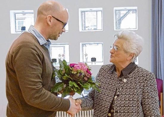 Im gut gefüllten Schubartsaal feierte der Seniorenclub der Arbeiterwohlfahrt (AWO) Geislingen am vergangenen Samstag sein 40-jähriges Bestehen. Nachdem die Mitglieder des Seniorenclubs, des AWO Vorstands sowie die Ehrengäste mit einem Glas Sekt und Knabbergebäck empfangen wurden, eröffnete Seniorenclub-Leiterin Anneliese Paul die Feier mit einem erzählten Rückblick auf 40 Jahre wechselhafte Geschichte. Selbst leitet die Rentnerin schon seit nunmehr 20 Jahren die Geschicke des Clubs, in dem sich immer dienstags durchschnittlich gut 50 Leute treffen. Auch Fasching und Weihnachten werden zusammen gefeiert und jährlich ein mehrtägiger Ausflug unternommen. Der Geislinger OB Frank Dehmer gratulierte dem mit 40 Jahren „g’scheiten“ Club, gefolgt vom AWO-Kreisverbandsvorsitzenden Hans-Ulrich Weidmann und AWO-Ortsvereinsvorsitzendem Martin Pretsch. Nachdem sämtliche Blumensträuße und Geschenke überreicht waren, servierte man Kaffee und Kuchen. Hier wie an anderen Stellen sorgte Alleinunterhalter Martin Russ für die richtige Stimmung und spielte am Keyboard zum Tanz auf. OB Frank Dehmer gratuliert stellvertretend Anneliese Paul |